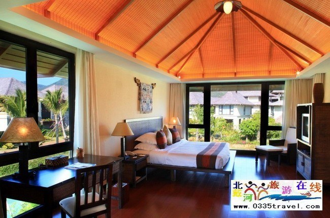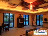 71%;并建有約1.4萬平方米的人工湖泊。酒店由九種不同類型的單體別墅組成,共有房間406間。戶型包括行政別墅、三居別墅、四居別墅、情侶別墅、會(huì)